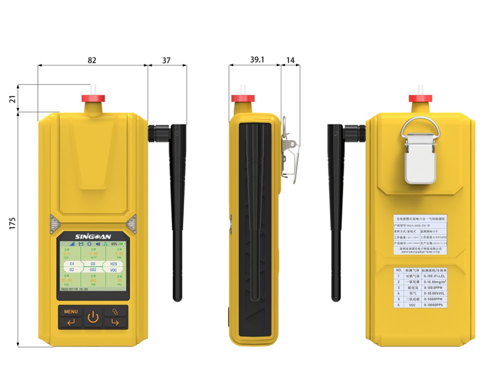 便攜式六合一氣體檢測儀產(chǎn)品尺寸圖