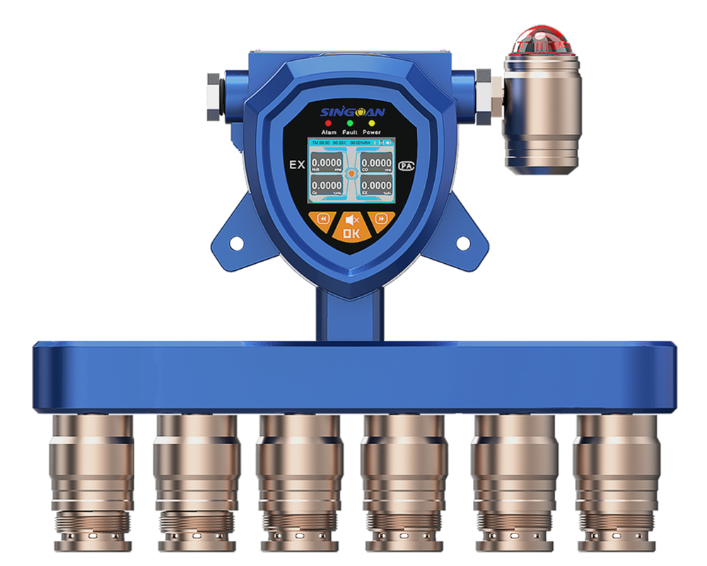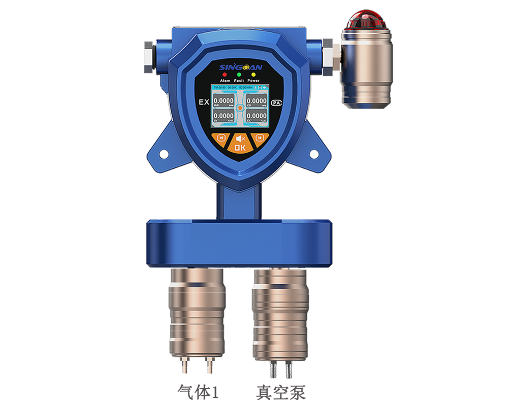 SGA-501B/503B/505B系列固定一體泵吸式多合一氣體檢測儀是深國安(股票代碼:681434)運用十多年氣體檢測儀生產經驗,專門針對多組合氣體檢測需求所研發生產的一款多參數氣體檢測儀表;產品可根據客戶需要任意搭配1-5種氣體組合,氣體種類不限,檢測量程不限;內置一體化真空泵,可以直接泵吸采樣;12-30V供電,24小時在線監測,超標自動聲光報警,還可通過內置繼電器自動聯動設備,排除險情;并支持4-20mA電流信號或RS485數字信號遠傳,溫濕度、顆粒物檢測功能選配;